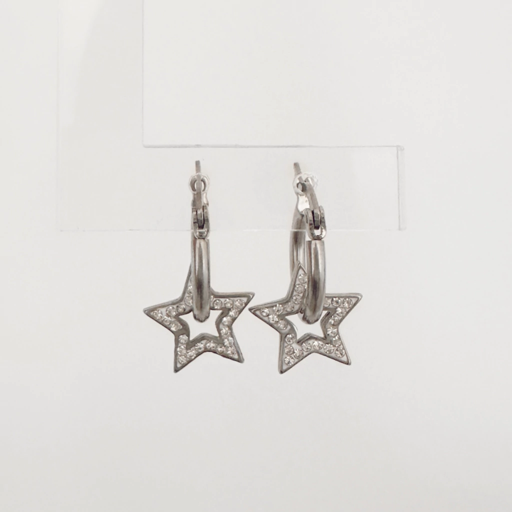 Son argollitas clásicas con cierre italiano y dijes de estrella que en su frente, tienen símil cristales. Las estrellitas son removibles por lo cual, tenes dos pares de aros en uno 🤩.